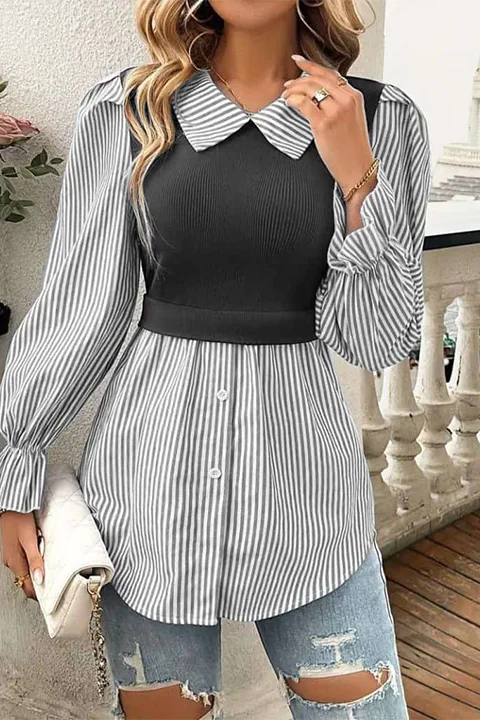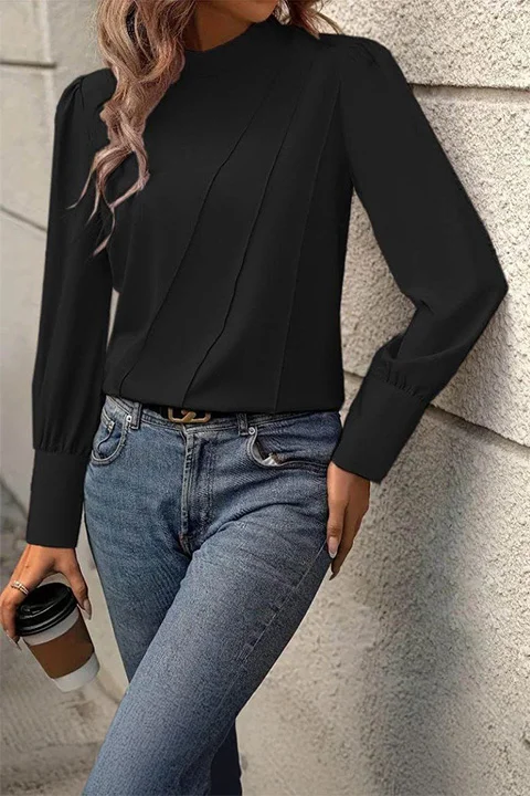 Uzun Kollu Bisiklet Yaka Kol ve Sırt Dügmeli Atlas Bluz
