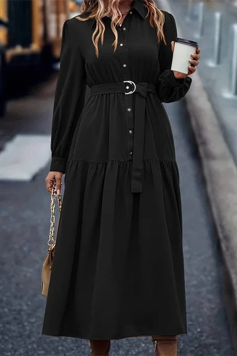 Siyah Dokuma Maksi Elbise